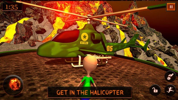 4.到达山顶,避免熔岩从地面吐出,在时间耗尽之前跑向直升机,进入直升机逃生并在此自由地面上获胜。