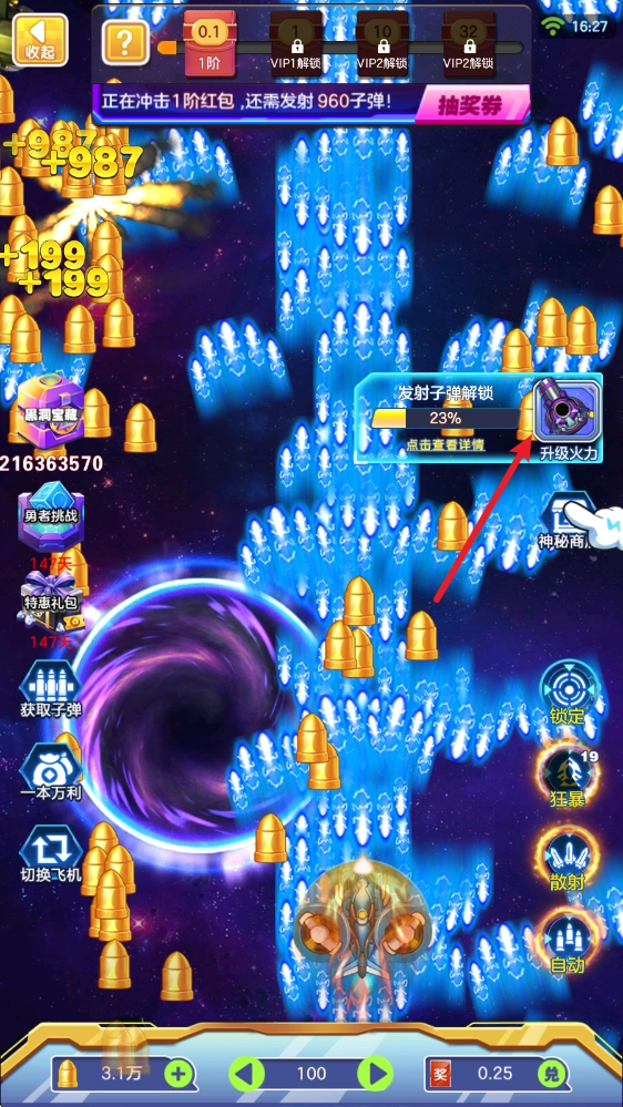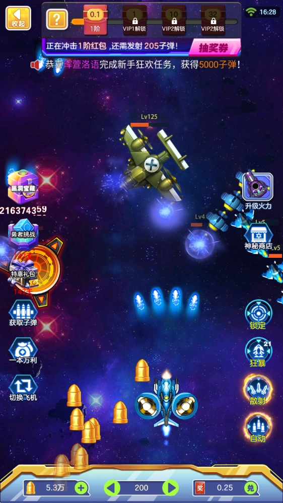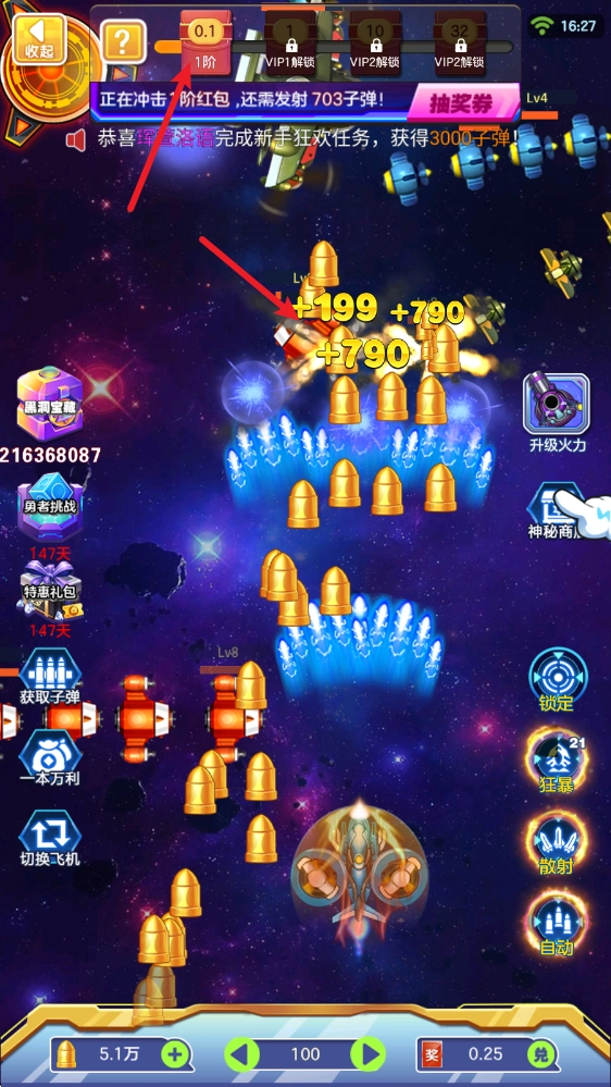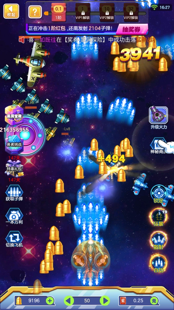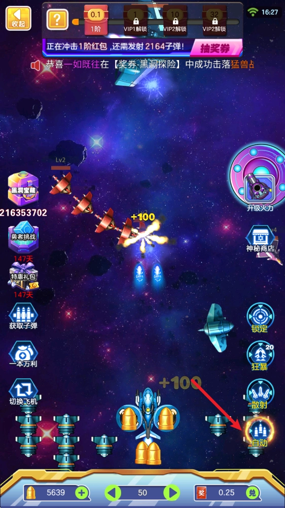 在游戏里,拖动飞机就能完成移动和射击操作,右下角还能开启自动模式。