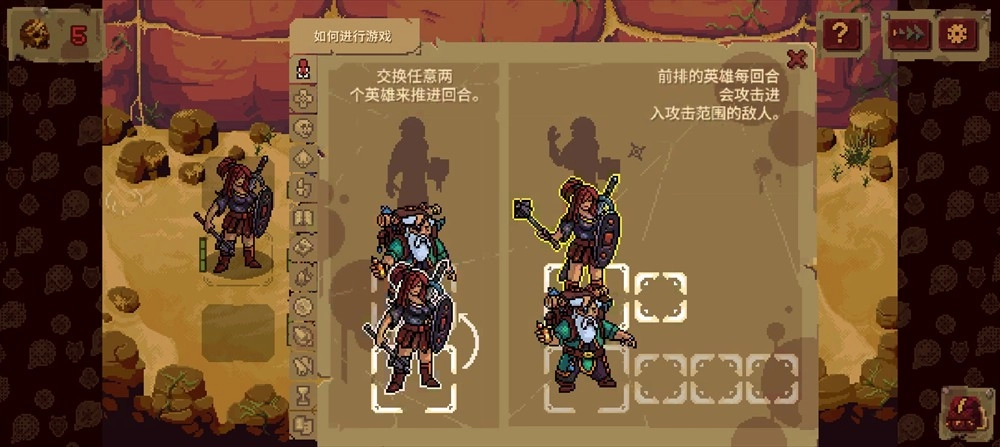 血盟守卫军2(Guards II))是一款好玩的策略回合制战棋游戏。游戏中设计了八位英雄,每位英雄都具有特色的技能以及战斗风格,玩家需要依靠实时战术来释放技能,打倒对面的敌人。游戏需要玩家使用一定的策略,按照每个角色的不同属性和技能进行排兵布阵,发挥出角色们的最强实力。同时,和传统战棋不同的是,游戏还创新性地增加了交换英雄位置的操作,玩家可以利用交换英雄的位置来释放更多技能,让战局更加变幻。