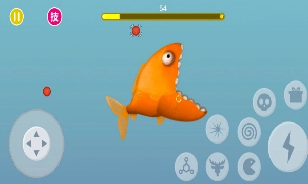 1.玩家可借助虚拟摇杆或手指滑动屏幕来操控小鱼的游动方向,当小鱼靠近体型更小的目标时会自动将其吞食。