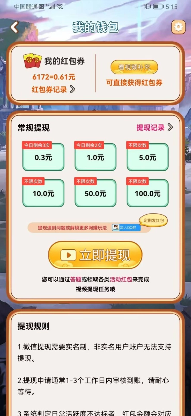 4. 除此之外,平台还设置了丰厚的红包奖励,玩家在答题闯关的过程中能够获取不同数额的红包。这类奖励机制有效调动了玩家的参与热情与竞争意识。